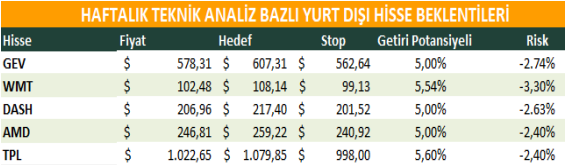 Haftalık Teknik Analiz Bazlı Yurtdışı Hisse Beklentileri