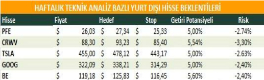 Haftalık Teknik Analiz Bazlı Yurtdışı Hisse Beklentileri