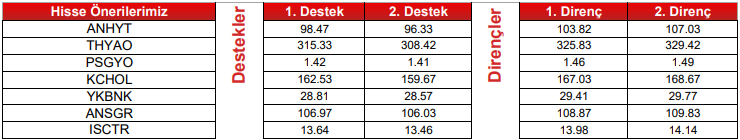 Endeks, Cuma günü gerçekleşen işlemlerde 109,50 puan yükselişle 9,951 puan seviyesinden kapanış gerçekleştirdi. Endeksin 9,850 destek seviyesi üzerinde yükseliş eğilimi korunabilir. Gün içi ilk direnç noktası 9,990 puan seviyesidir. Sonraki direnç noktası ise 10,070 puan seviyesidir. Gün içi ilk destek noktası 9,850 puan seviyesidir. Sonraki destek noktası 9,750 puan seviyesidir.