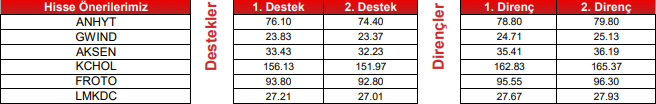 Endeks, dün gerçekleşen işlemlerde 169,06 puan yükselişle 10,167 puan seviyesinden kapanış gerçekleştirdi. Endeks için 10,060 ile 10,320 puan seviyeleri arasında işlem aktivitesi bekliyoruz. Gün içi ilk direnç noktası 10,200 puan seviyesidir. Sonraki direnç noktası ise 10,320 puan seviyesidir. Gün içi ilk destek noktası 10,060 puan seviyesidir. Sonraki destek noktası 9,900 puan seviyesidir.