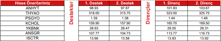 Teknik Bazlı Hisse Öneri Listemiz