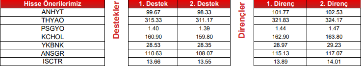 Endeks, dün gerçekleşen işlemlerde 36,94 puan yükselişle 9,882 puan seviyesinden kapanış gerçekleştirdi. Endeksin 9,990 direnç seviyesini geçmesi durumunda tepki yükselişi ivme kazanabilir. Gün içi ilk direnç noktası 9,990 puan seviyesidir. Sonraki direnç noktası ise 10,070 puan seviyesidir. Gün içi ilk destek noktası 9,750 puan seviyesidir. Sonraki destek noktası 9,660 puan seviyesidir.