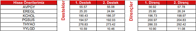 Endeks, dün gerçekleşen işlemlerde 15,72 puan düşüşle 12,369 puan seviyesinden kapanış gerçekleştirdi. Endeksin 12,310 destek seviyesi üzerinde yükseliş eğiliminin korunması beklenebilir. Gün içi ilk direnç noktası 12,435 puan seviyesidir. Sonraki direnç noktası ise 12,500 puan seviyesidir. Gün içi ilk destek noktası 12,310 puan seviyesidir. Sonraki destek noktası 12,180 puan seviyesidir.