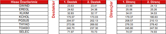 Endeks, dün gerçekleşen işlemlerde 145,02 puan yükselişle 11,456 puan seviyesinden kapanış gerçekleştirdi. Endeksin 11,350 destek seviyesi üzerinde güçlü yükseliş eğilimi korunabilir. Gün içi ilk direnç noktası 11,500 puan seviyesidir. Sonraki direnç noktası ise 11,600 puan seviyesidir. Gün içi ilk destek noktası 11,350 puan seviyesidir. Sonraki destek noktası 11,230 puan seviyesidir.