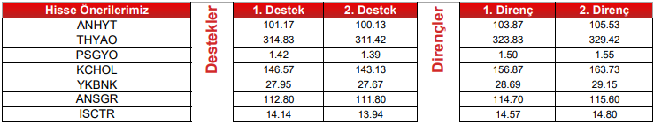 Endeks, dün gerçekleşen işlemlerde 153,22 puan düşüşle 9,763 puan seviyesinden kapanış gerçekleştirdi. Endeksin 9,590 ile 9,990 seviyeleri arasındaki geniş bant aralığında dalgalanma sürüyor. Gün içi ilk direnç noktası 9,870 puan seviyesidir. Sonraki direnç noktası ise 9,990 puan seviyesidir. Gün içi ilk destek noktası 9,660 puan seviyesidir. Sonraki destek noktası 9,590 puan seviyesidir.