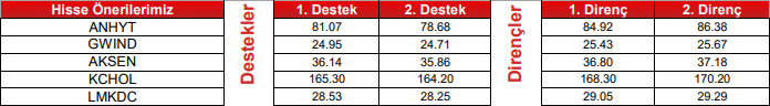 Teknik Bazlı Hisse Öneri Listemiz