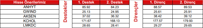 Endeks, dün gerçekleşen işlemlerde 97,07 puan yükselişle 10,689 puan seviyesinden kapanış gerçekleştirdi. Endeksin 10,530 destek seviyesi üzerinde yükseliş eğilimi korunabilir. Gün içi ilk direnç noktası 10,780 puan seviyesidir. Sonraki direnç noktası ise 10,900 puan seviyesidir. Gün içi ilk destek noktası 10,640 puan seviyesidir. Sonraki destek noktası 10,530 puan seviyesidir.
