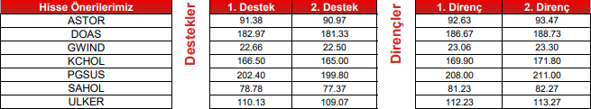 Endeks, dün gerçekleşen işlemlerde 34,84 puan düşüşle 10,888 puan seviyesinden kapanış gerçekleştirdi. Endeksin 10,840 destek seviyesi üzerinde yükseliş eğilimi korunabilir. Gün içi ilk direnç noktası 11,040 puan seviyesidir. Sonraki direnç noktası ise 11,160 puan seviyesidir. Gün içi ilk destek noktası 10,840 puan seviyesidir. Sonraki destek noktası 10,750 puan seviyesidir.