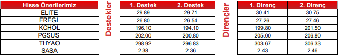 Endeks, Cuma günü gerçekleşen işlemlerde 141,22 puan yükselişle 12,992 puan seviyesinden kapanış gerçekleştirdi. Endeksin 13,170 direnç seviyesine doğru olası yükselişlerde kar satışı denenebilir. Gün içi ilk direnç noktası 13,050 puan seviyesidir. Sonraki direnç noktası ise 13,170 puan seviyesidir. Gün içi ilk destek noktası 12,880 puan seviyesidir. Sonraki destek noktası 12,750 puan seviyesidir.