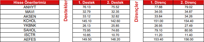 Endeks, Cuma günü gerçekleşen işlemlerde 119,17 puan düşüşle 9,356 puan seviyesinden kapanış gerçekleştirdi. Endeksin 9,530 direnç seviyesine doğru tepki yükselişi beklenebilir. Gün içi ilk direnç noktası 9,530 puan seviyesidir. Sonraki direnç noktası ise 9,650 puan seviyesidir. Gün içi ilk destek noktası 9,310 puan seviyesidir. Sonraki destek noktası 9,190 puan seviyesidir.