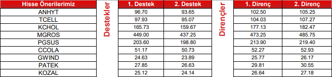 Teknik Bazlı Hisse Öneri Listemiz