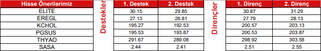Endeks, dün gerçekleşen işlemlerde 70,33 puan düşüşle 13,106 puan seviyesinden kapanış gerçekleştirdi. Endeksin 13,270 direnç seviyesine doğru olası yükselişlerde kar satışı denenebilir. Gün içi ilk direnç noktası 13,200 puan seviyesidir. Sonraki direnç noktası ise 13,270 puan seviyesidir. Gün içi ilk destek noktası 12,980 puan seviyesidir. Sonraki destek noktası 12,800 puan seviyesidir.