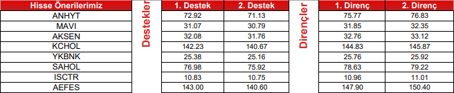 Endeks, dün gerçekleşen işlemlerde 35,88 puan düşüşle 9,177 puan seviyesinden kapanış gerçekleştirdi. Endeksin 20 günlük ortalama seviyesinin bulunduğu 9,365 direnç seviyesine doğru tepki yükselişi beklenebilir. Gün içi ilk direnç noktası 9,310 puan seviyesidir. Sonraki direnç noktası ise 9,365 puan seviyesidir. Gün içi ilk destek noktası 9,110 puan seviyesidir. Sonraki destek noktası 9,050 puan seviyesidir.