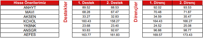 Endeks, dün gerçekleşen işlemlerde 39,05 puan düşüşle 9,484 puan seviyesinden kapanış gerçekleştirdi. Endeksin 9,730 direnç seviyesi altında negatif eğilim sürebilir. Gün içi ilk direnç noktası 9,590 puan seviyesidir. Sonraki direnç noktası ise 9,730 puan seviyesidir. Gün içi ilk destek noktası 9,460 puan seviyesidir. Sonraki destek noktası 9,350 puan seviyesidir.