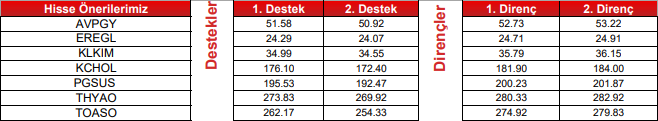 Endeks, dün gerçekleşen işlemlerde 203,62 puan yükselişle 11,702 puan seviyesinden kapanış gerçekleştirdi. Endeksin 10,480 destek seviyesi üzerinde yükseliş eğiliminin korunması beklenebilir. Gün içi ilk direnç noktası 11,760 puan seviyesidir. Sonraki direnç noktası ise 12,000 puan seviyesidir. Gün içi ilk destek noktası 11,600 puan seviyesidir. Sonraki destek noktası 11,480 puan seviyesidir.