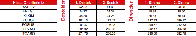 Endeks, dün gerçekleşen işlemlerde 321,78 puan yükselişle 12,023 puan seviyesinden kapanış gerçekleştirdi. Endeksin 11,900 destek seviyesi üzerinde yükseliş eğiliminin korunması beklenebilir. Gün içi ilk direnç noktası 12,280 puan seviyesidir. Sonraki direnç noktası ise 12,600 puan seviyesidir. Gün içi ilk destek noktası 11,900 puan seviyesidir. Sonraki destek noktası 11,780 puan seviyesidir.