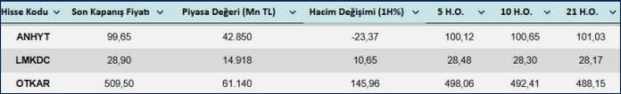 Yurt İçi Haftalık Hisse Önerileri