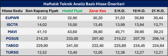 Haftalık Teknik Analiz Bazlı Hisse Önerileri