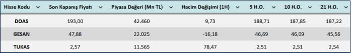 100 günlük ortalamasının üzerinde işlem gören hissede 2,50 TL seviyesi üzerinde kalındıkça pozitif hava korunabilir.