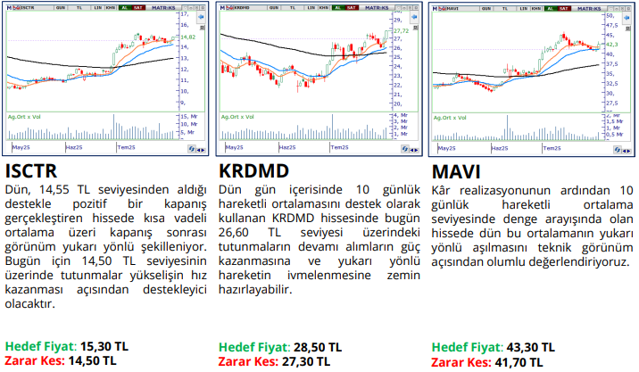 Teknik açıdan dün gerçekleşen 10.750 puan seviyesine yakın kapanışı olumlu değerlendiriyoruz. Bu seviyeyi kısa vadede ana direnç noktası olarak izlemeye devam ediyoruz. Haftanın son işlem gününde 10.750 seviyesinde yaşanabilecek olası zorlanmalar teknik görünümde kâr realizasyonlarını tetikleyebilecek bir sinyal oluşturabilir. 10.750 seviyesi üzerinde kalıcılık sağlanması durumunda endekste 10.900 bölgesine doğru yeni bir yükseliş dalgası gündeme gelebilir.