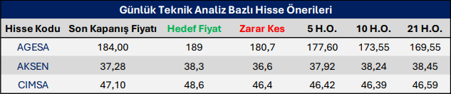 Günlük Teknik Analiz Bazlı Hisse Önerileri