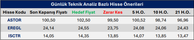 Günlük Teknik Analiz Bazlı Hisse Önerileri