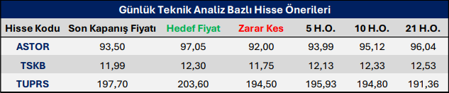 Günlük Teknik Analiz Bazlı Hisse Önerileri