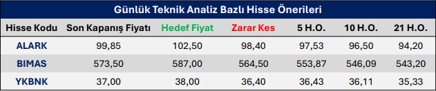 Günlük Teknik Analiz Bazlı Hisse Önerileri
