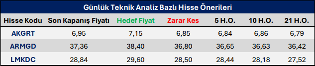 Günlük Teknik Analiz Bazlı Hisse Önerileri