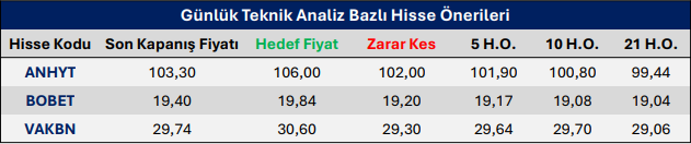 Günlük Teknik Analiz Bazlı Hisse Önerileri
