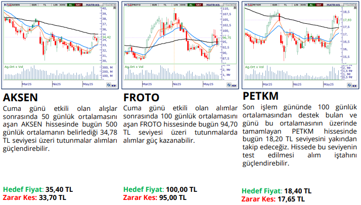 Geçtiğimiz haftanın genelinde %2,96 oranında değer kazanan BIST-100 endeksinde Cuma günü kapanışa doğru alımların etkili olduğunu gördük. Endekste dört günlük yeni işlem haftasında 9.500-9.550 bölgesini destek olarak takip edecekken yukarı tarafta 9.800 ve 9.900 seviyeleri kritik olacaktır.