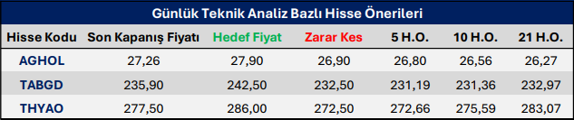 Günlük Teknik Analiz Bazlı Hisse Önerileri