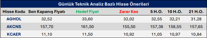 Günlük Teknik Analiz Bazlı Hisse Önerileri