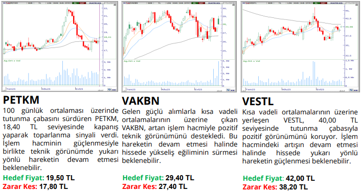 Kısa vadeli ortalamaların üzerine çıkan endekste 11.500 seviyesi ilk önemli direnç konumunda. Bu seviyenin aşılması halinde 11.650 – 11.750 puan bandı sonraki hedef olarak izlenecektir.
