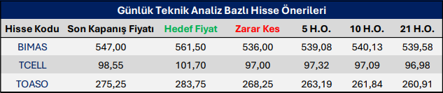 Günlük Teknik Analiz Bazlı Hisse Önerileri