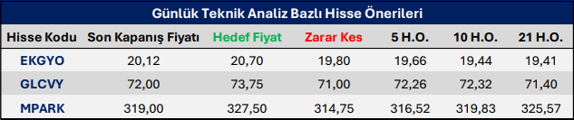 Günlük Teknik Analiz Bazlı Hisse Önerileri