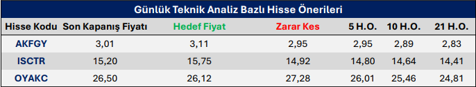Günlük Teknik Analiz Bazlı Hisse Önerileri