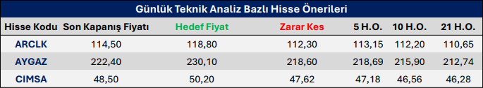 Günlük Teknik Analiz Bazlı Hisse Önerileri