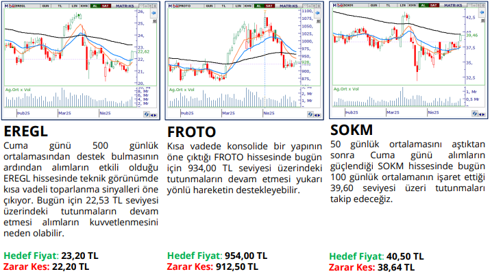 Son işlem gününde bankacılık sektöründe yaşanan %2,50’yi aşan kayıplar BIST-100 endeksinde satıcılı bir havanın etkili olmasına neden olurken haftanın ilk işlem gününde endekste 21 günlük ortalamanın belirlediği 9.500 seviyesi üzeri tutunmaları takip edeceğiz. Bu seviyenin üzerinde kalıcılık sağlanması durumunda endeksin hafta içerisinde 200 günlük üssel ortalamanın bulunduğu 9.650 – 9.700 bandına doğru bir ivme kazanmasını bekliyoruz.