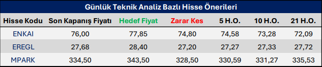 Günlük Teknik Analiz Bazlı Hisse Önerileri