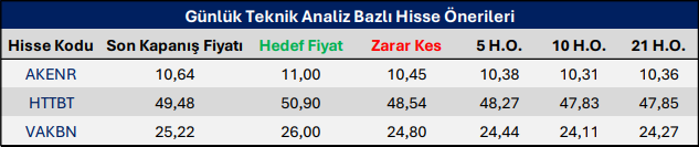 Günlük Teknik Analiz Bazlı Hisse Önerileri