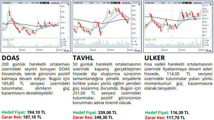 Teknik olarak kısa vadeli ana direnç bölgesi olarak izlediğimiz 10.750 puan seviyesinin aşılmasıyla birlikte yukarı yönlü hareketin güç kazandığını gördüğümüz BIST-100 endeksi dün günü yatay bir şekilde tamamladı. Endekste ilk etapta 11.000 puan, ardından ise 11.252 seviyesindeki zirve bölgeleri teknik hedef olarak öne çıkıyor. Potansiyelini koruyan piyasada seans içi olası geri çekilmelerde ilk önemli destek olarak 10.750 seviyesi takip edilebilir. Düzeltme halinde ise 10.450 puan seviyesi kısa vadeli yükseliş trendi için stop-loss bölgesi olarak önemini koruyor.