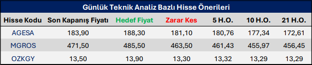 Günlük Teknik Analiz Bazlı Hisse Önerileri