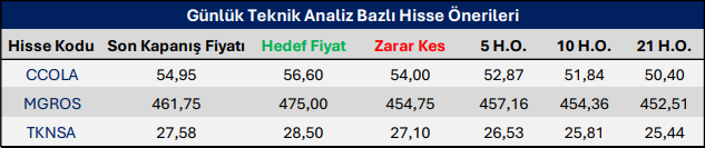 Günlük Teknik Analiz Bazlı Hisse Önerileri