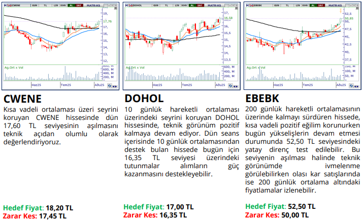10.750 puan seviyesinin aşılmasıyla birlikte yukarı yönlü hareketin güç kazandığını gördüğümüz BIST-100 endeksi dün günü pozitif bir şekilde tamamladı. Endekste ilk etapta 11.000 puan, ardından ise 11.252 seviyesindeki zirve bölgeleri teknik hedef olarak takip etmeye devam ediyoruz. Endekste olası geri çekilmelerde ilk önemli destek olarak 10.750 seviyesi takip edilebilir. Düzeltme halinde ise 10.450 puan seviyesi kısa vadeli yükseliş trendi için stop-loss bölgesi olarak önemini koruyor.