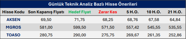 Günlük Teknik Analiz Bazlı Hisse Önerileri