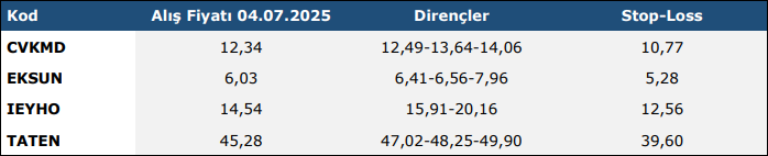 * Piyasa koşullarının uygun görülmediği haftalarda teknik takip listesi oluşturulmamaktadır.