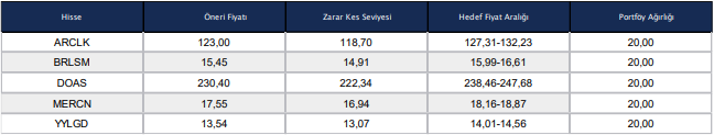 Kaynak: Pusula Yatırım Haftalık Model Portföy