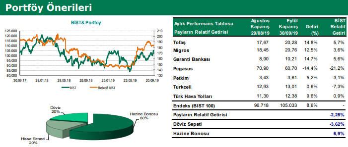 Bu beklentilerin ışığında portföyümüzdeki tahvilin ağırlığını %60, döviz ağırlığını %20 ve hisse senedi ağırlığını da %20 olarak koruyoruz.