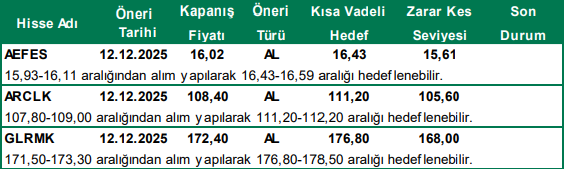 İZLE: Alım için hissenin takibe alınmasını gerektiğini ifade etmektedir.